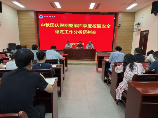 (本网讯:保卫处)为进一步压实校园安全责任,全力保障中秋国庆假期校园安全稳定,9月26日下午,我校在第二报告厅召开中秋国庆假期暨第四季度校园安全稳定工作分析研判会。校党委委员、副校长周清平,校党委委员、宣传部部长赵雪政出席会议并讲话。